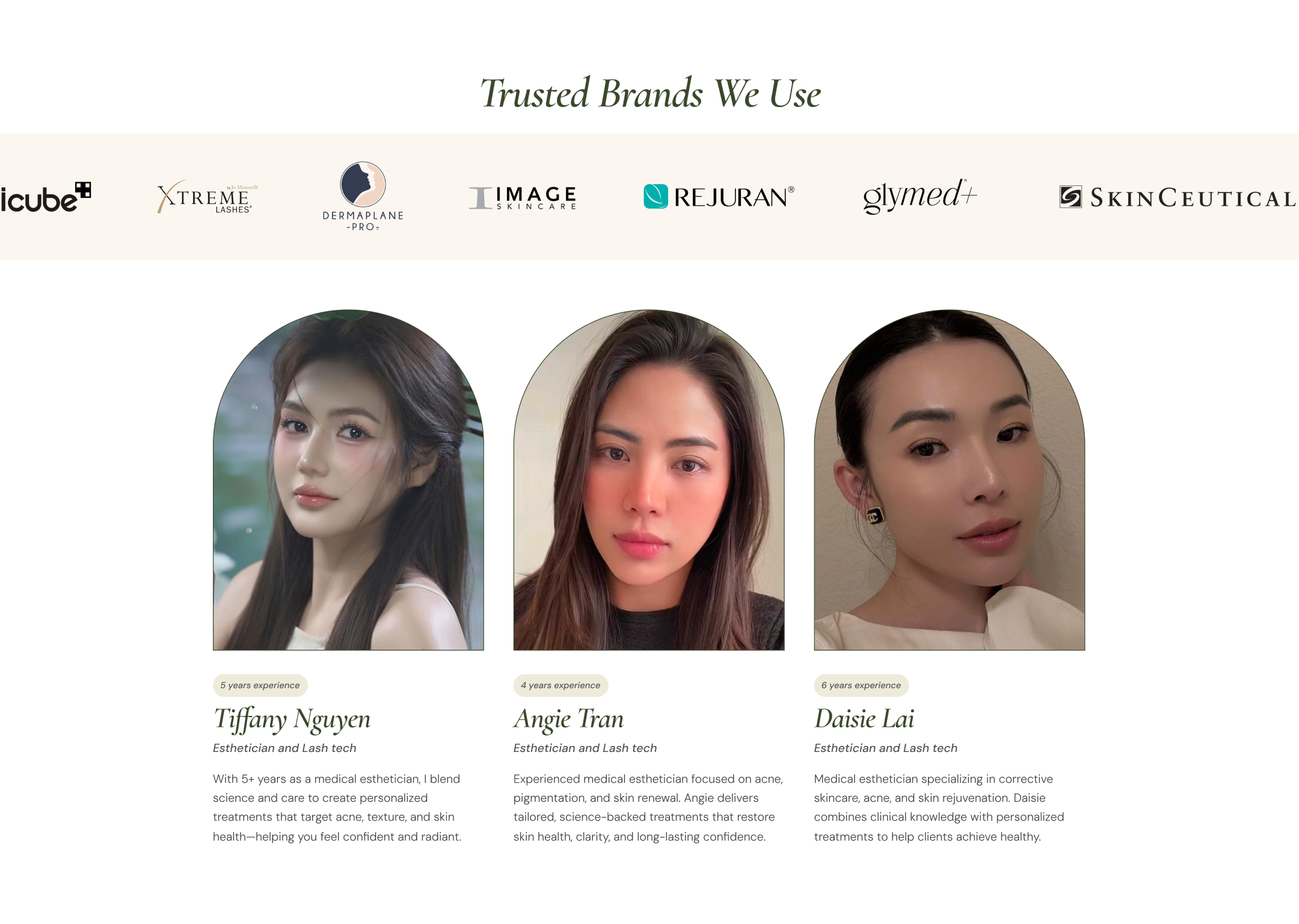 I established trust by placing licenses, certifications, medical positioning, trusted product brands, testimonials, and real team photos above the fold. This immediately signals professionalism and reduces hesitation for first-time visitors.
